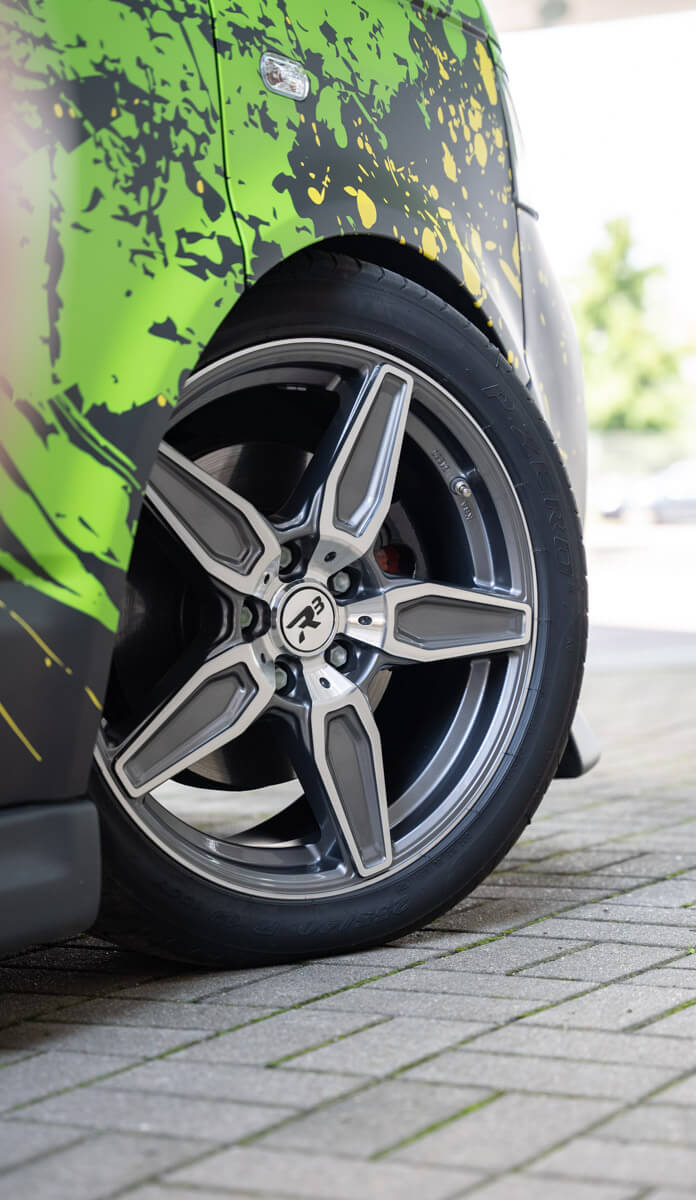 Mit R3 Wheels und Pirelli waren schnell zwei Partner gefunden, die Felgen und Reifen sponserten, anschließend wurde von uns die passende zugelassene Rad-Reifen-Kombination geprüft, montiert und versendet.