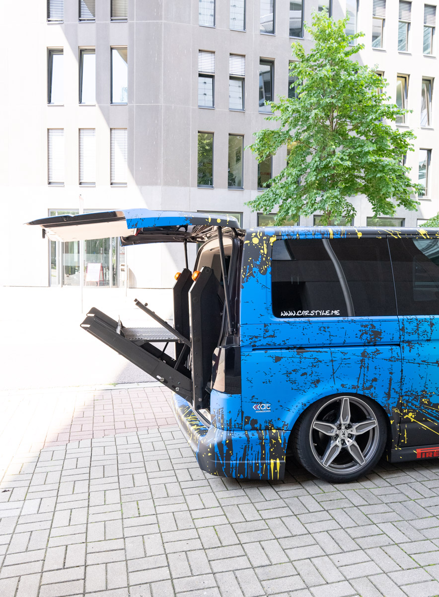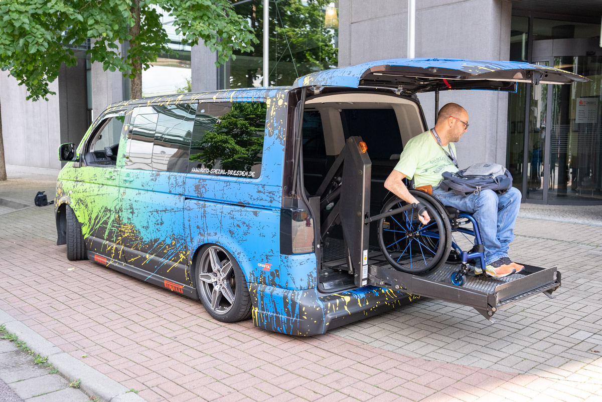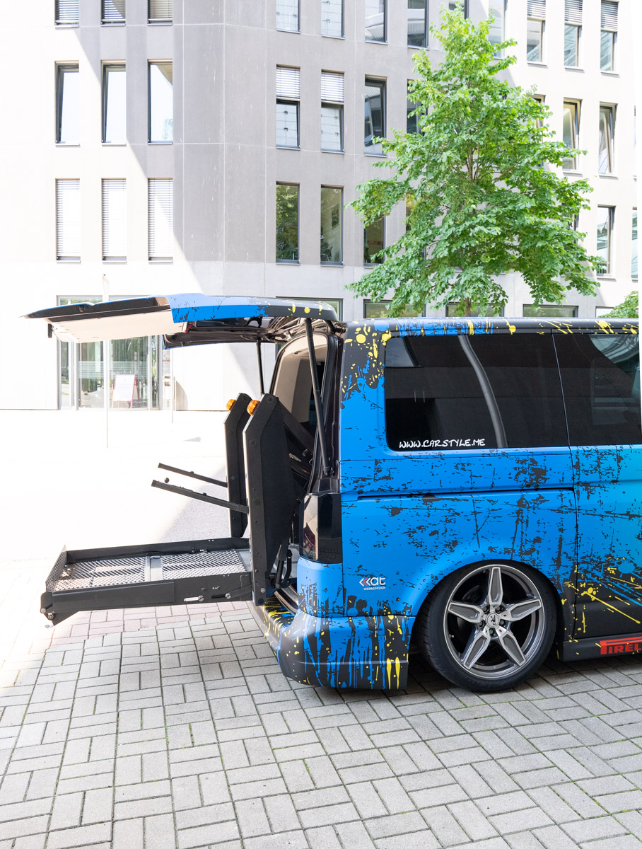 Mit seinem VW T5 V6 ist Matthias wahrlich ein Blickfang, doch hinter diesem extravaganten Fahrzeug steckt noch jede Menge mehr als nur die auffällige Autofolie – im wörtlichen wie übertragenen Sinne! Wir durften Matthias über sein Traumauto ausfragen und haben dabei unheimlich viel Neues gelernt. Wie er zu dem Bus gekommen ist, was alles zu einem rollstuhlgerechten Ausbau gehört und was wir damit zutun haben, erfahrt ihr hier.