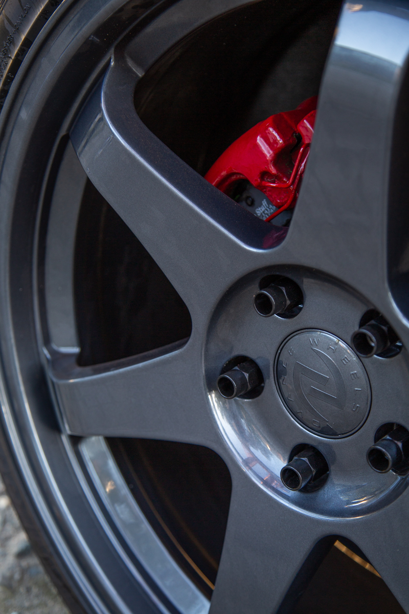 Da ich das Auto nach dem Kauf 2014 noch täglich gefahren bin, kamen zu Beginn erstmal nur 30er Federn rein – es sollte ja noch alltagstauglich bleiben – und die passenden Felgen. Genau die zu finden, die ich immer haben wollte, war gar nicht so einfach… Advance Wheels haben als Einzige genau das Felgendesign angeboten, wie ich es immer haben wollte, denn es sollte ja zum gesamten Konzept passen, also Richtung JDM, Japan Tuning usw.