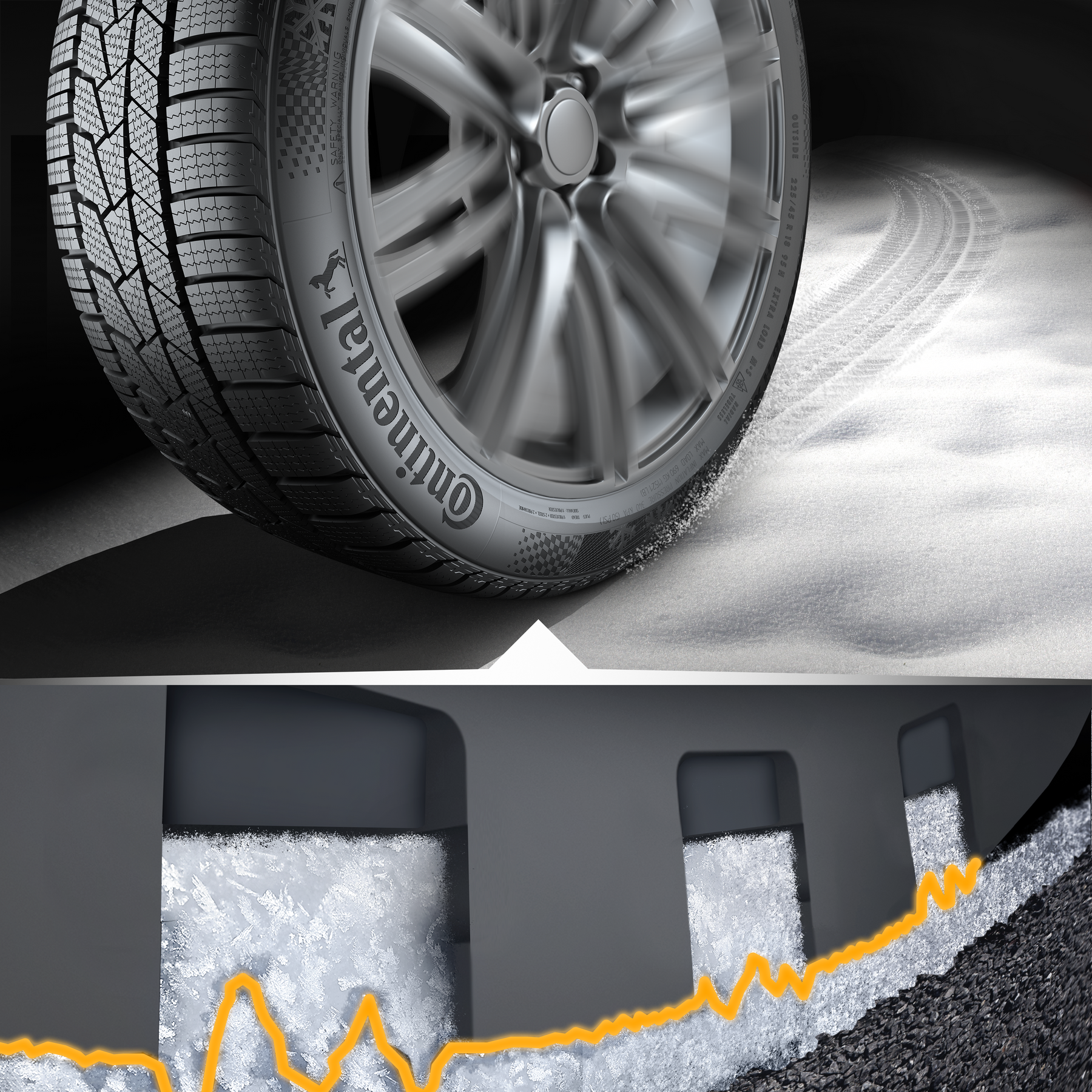 Griffigkeit auf Schnee und Eis: Winterreifen verfügen über spezielle Lamellen und ein feines Rillenmuster, das für sicheren Halt auf vereisten und verschneiten Straßen sorgt. Modelle wie der Continental WinterContact TS 870 nutzen eine Mischung aus weichem Gummi und zusätzlichen Rillen, die auch bei extrem niedrigen Temperaturen elastisch bleiben und so den Grip erhöhen.